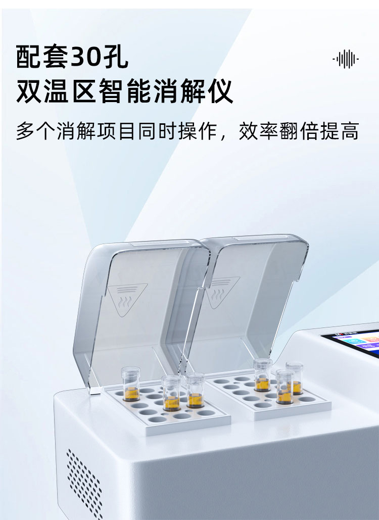 配套30孔雙溫區智能消解儀,多個消解項目同時操作,效率翻倍提高。